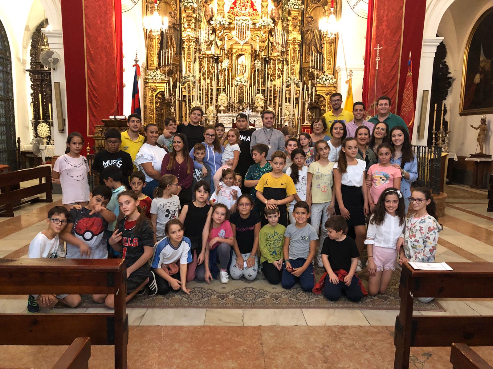 Un nutrido grupo de niños de las Colonias de Verano «Semper in Amicitia» han participado en la ofrenda de floral a Nuestra Señora de Valme en la tarde de ayer jueves. Posteriormente disfrutaron de un rato de juego y una merienda en el Parque de La Alquería